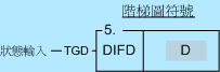 ● DIFD指令系將狀態(tài)輸入〝TG↓〞之狀態(tài)取下微分(在TG↓降緣變換時產生一波寬為掃描時間T之單擊脈波)后,將此單擊脈波信號存入D所指定之線圈內。