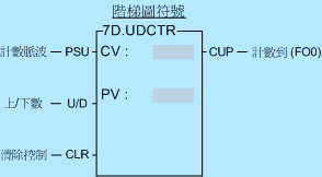 ● 當(dāng)清除控制〝CLR〞為0,則允許計數(shù),本指令本質(zhì)上為P指令,當(dāng)計數(shù)脈波〝PSU〞由0→1(升緣)時,計數(shù)值CV才會加1(當(dāng)U/D=1時)或減1(當(dāng)U/D=0時)。