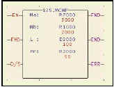 FBs-PLC指令超過300種以上,并采用最人性化,可讀性最高之多輸入/多輸出指令方式。如左圖之三個(gè)輸入即可變化出5種功能,一個(gè)指令即可達(dá)成大部分它牌PLC數(shù)個(gè)指令才能做到的功能,使程序大為精簡(jiǎn),同時(shí)運(yùn)算結(jié)果可直接由指令方塊右側(cè)之輸出取得。在程序可讀性方面,每個(gè)應(yīng)用指令之輸入或輸出端均有功能助憶簡(jiǎn)碼說明,操作數(shù)字段則直接標(biāo)明其屬性簡(jiǎn)稱并可于其正下方直接顯示其狀態(tài)或內(nèi)容值,可免除它牌PLC無標(biāo)示需死記之麻煩,程序可讀性最高,效率******。