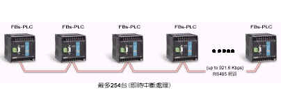 高速CPU Link 利用Port2之RS485界面,可做永宏P(guān)LC間多達(dá)254臺(tái)之高速LINK,且僅需于主站使用一個(gè)CLINK指令即可達(dá)成,最高通訊速度可達(dá)921.6 Kbps,適用于多臺(tái)PLC作分布式即時(shí)控制之應(yīng)用(僅限高速共享資料區(qū)之資料,因?qū)崟r(shí)更新,故占用較多PLC