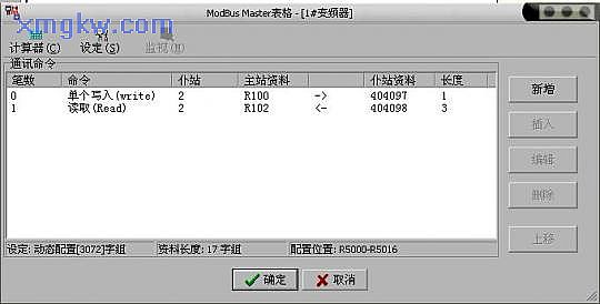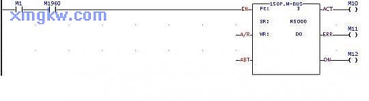 (3) 通過(guò)通訊口port1~port4的任意一個(gè),都可以使永宏P(guān)LC作為主站,與外圍設(shè)備通過(guò)Modbus協(xié)議進(jìn)行通訊。同樣是通過(guò)“功能指令+表格”的形式,F(xiàn)UN150.M_BUS指令可輕易實(shí)現(xiàn)PLC對(duì)變頻器的通訊控制,簡(jiǎn)單顯示如下: