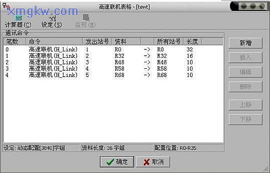 高速聯(lián)機(jī)的數(shù)據(jù)傳輸理念是以COMMON DATA MEMORY 觀念來(lái)設(shè)計(jì),每站最多支配32word長(zhǎng)度的資料區(qū)域。例如主站將R0~R31 的內(nèi)容送出,則所有從站PLC 的R0~R31 的內(nèi)容都會(huì)與主站相同;2 號(hào)從PLC 將R32~R47 中內(nèi)容送出,則主站及其它從PLC 的R32~R47 的內(nèi)容都會(huì)與2 號(hào)站相同,依次類(lèi)推。