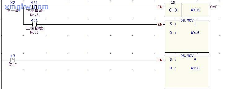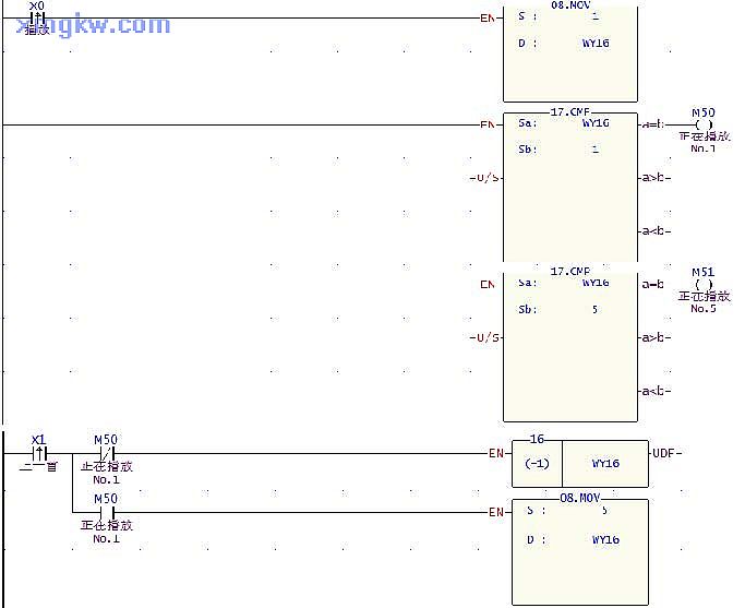 2. [上一首 ]和[下一首]的控制,只需要對 WY16的值作“減 1”和“加 1”運算即可,而循環(huán)播放則只需要作比較判斷,再作設(shè)定即可。