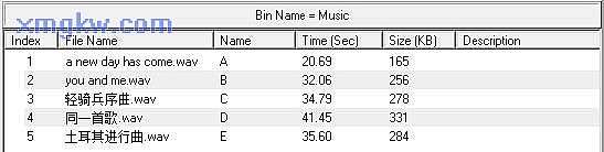 Play List):根據(jù)需要,將各個 Bin中的語音文件按順序添加到播放清單中,以供生成最終的工作文檔。選擇菜單欄【 Play List】下的【 Create Play list】,本例中更名為【PlayList0】,并右鍵點擊曲目 A,選擇【 Add To Play List】?【Move to】:1。重復(fù)上述操作,將剩下的 4個曲目添加到播放清單上去。下圖為 PlayList0的內(nèi)容: