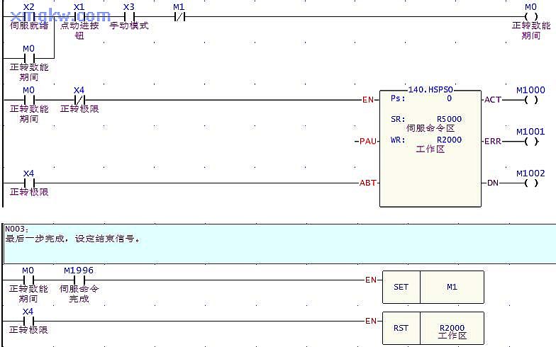 其中 N003行,F(xiàn)UN140的伺服命令表格如下: