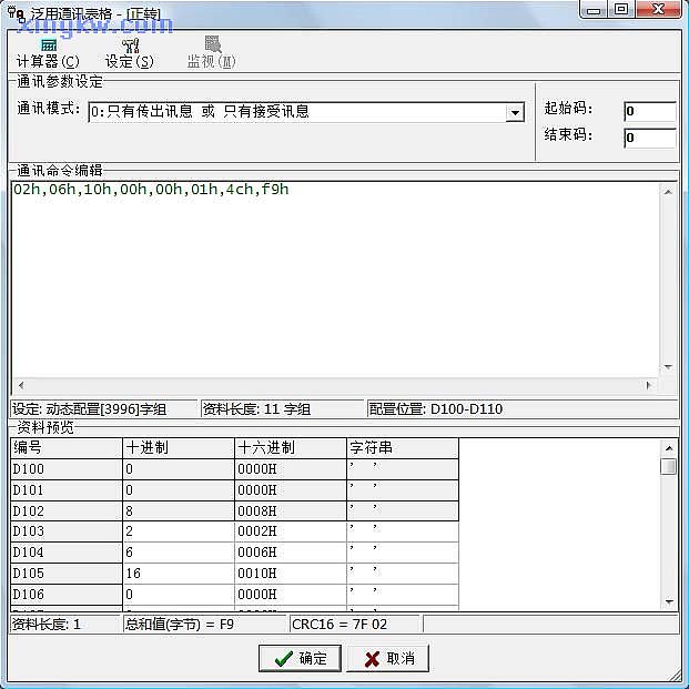 每一筆通訊命令,只需要按照通訊協(xié)議填寫即可,其中總和值和 CRC16值可以在泛用通訊表格的狀態(tài)欄處顯示,方便使用者計算校驗和。