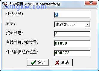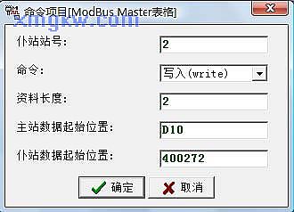 M1=On時,第二個 FUN150.M-BUS指令被執(zhí)行,將 D10、D11 的內(nèi)容分別寫入 H10F、H110內(nèi)。地址映射規(guī)則:將十六進(jìn)制的仆站地址,先轉(zhuǎn)換為十進(jìn)制,再加上 400001。