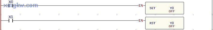 按一下“啟動按鈕” X0,輸出點 Y0變?yōu)?ON;按一下“關(guān)斷按鈕” X1,輸出點 Y0變?yōu)?OFF。